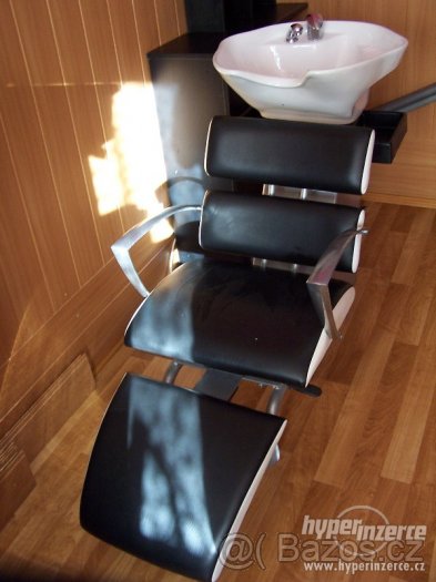 Vybavení do kadeřnického salonu.Nadčasový desing černá koženka s bílými doplnky chromová madla i hydraulika.2x křeslo /á 4000 kč/mycí box 14 000 kč prodám pouze jako set ne jednotlivě.Dále obsluha 3 000kč černé lamino a závěsný sušák na vlasy s ramenem kč 3000 kčCelá sestava 25000 kč + dárek pojízdný vozík zdarma.Používané 1 rok. Při zájmu foto zašlu na email.Dovoz k vám mohu zajistit za cenu spotřeby benzínu,mám dodávku.