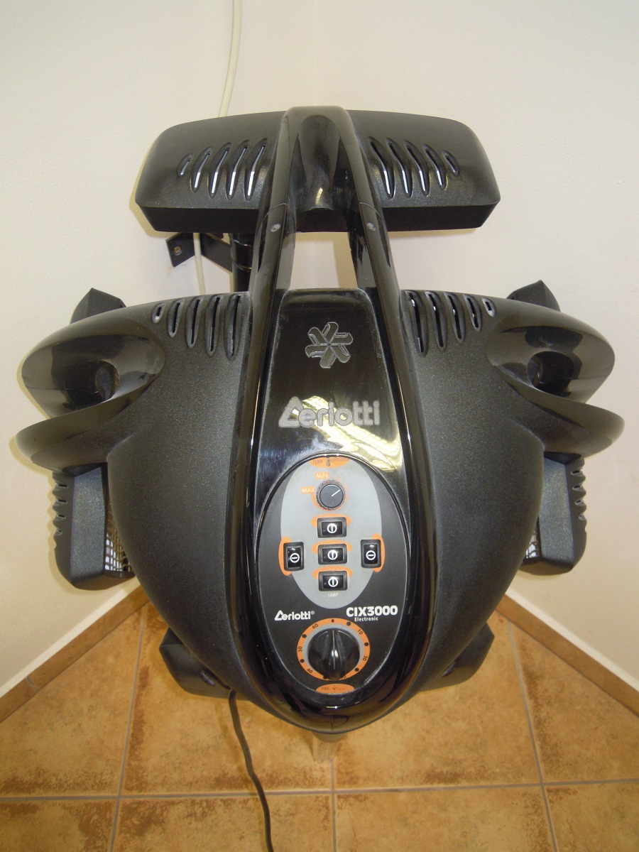 Prodám Ceriotti Electric Klimazon CIX3000, možnost připevnění na zeď + přenechám i stojan s kolečky. Jednoduchý způsob ovládání, snižuje celkovou dobu působení o polovinu. Výběr funkcí. Tepelný regulátor: manuální min/max. Časový spínač: manuální. Umožňuje zapnutí/vypnutí každé paraboly zvlášť. PC 18000,- Používaný minimálně.