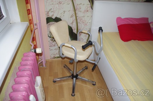Kadeřnické křeslo s hydraulicky nastavitelnou výškou na bázi tvořené pětiramenným křížem. Kovové područky, příjemné polstrování. Možnost více kusů. Dohoda.
